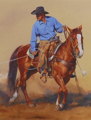 John Fawcett The Looking Glass Oil 20″ By 16″ John Fawcett Stirrin’ Up Some Dust Watercolor 20″ By 16″
