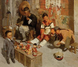 Mian Situ remembers his grandfather and the hard times in China very well. And it is, perhaps, the memories of his grandfather and the sacrifices he made that in some way color Situ’s paintings. Mian Situ (California) Chinatown Merchants Oil 32″ By 38″ F. S., 1905 Mian Situ (California) Move