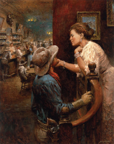 Born and raised in Carthage, Missouri, population 14,000, 53 years later Andy Thomas still calls the small town home. He is living proof that you can find success and personal fulfillment without straying far from your own backyard. Andy Thomas (Missouri) Johnny Saved The Girl Oil 40″ X 30″ Cowboy