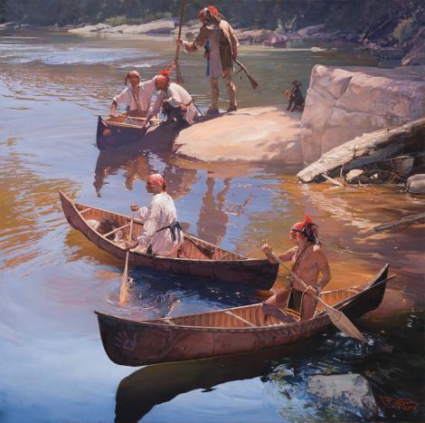 Known for evocative historical paintings that depict the lives of the Eastern Woodland Indians and non-native settlers, who lived in the region surrounding his home in Western Pennsylvania during the 18th century, John Buxton, like several successful fine artists, began his career as a commercial illustrator. Determined to pursue his