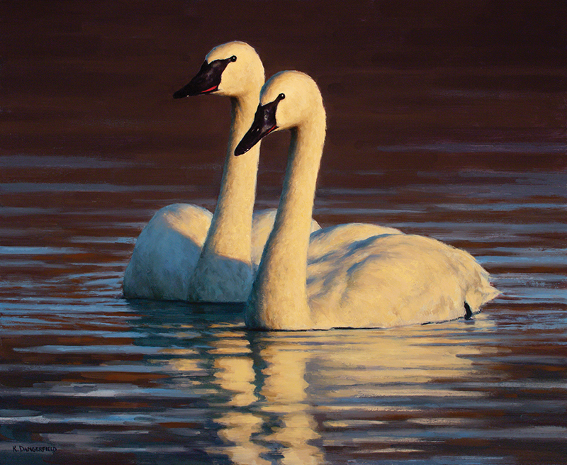 “I photographed this pair of trumpeter swans on a small pond in Wyoming and was drawn to their overlapping shapes, the contrast of warm and cool colors, and the reflections in the water.”