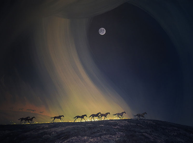 It started with his childhood love of cowboy art, horses, and the view from his bedroom window in his childhood home in Nebraska. Then it merged with painters he was introduced to in college—from