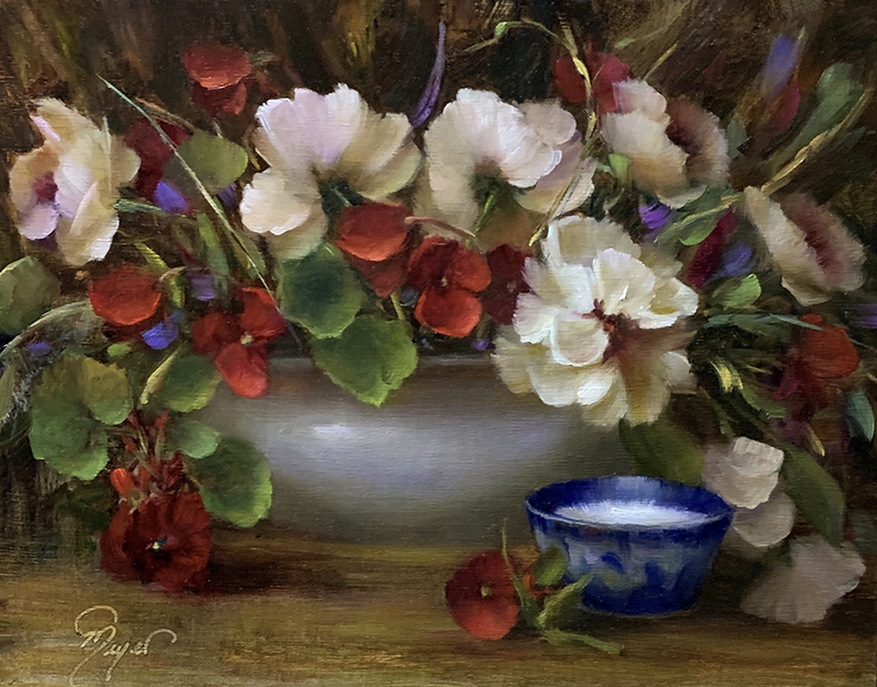 So says Pat Meyer who is helping people do just that with her stunningly vibrant paintings of flowers, landscapes, and ballerinas. Her works have earned a myriad of awards as well as invitations to exhibit at prestigious art shows. She is especially proud that she is a signature artist with the National Oil and Acrylic Painters of America (NOAPS), is a member of Women Artists of the West (WAOW), and has won Best Floral awards with both groups.