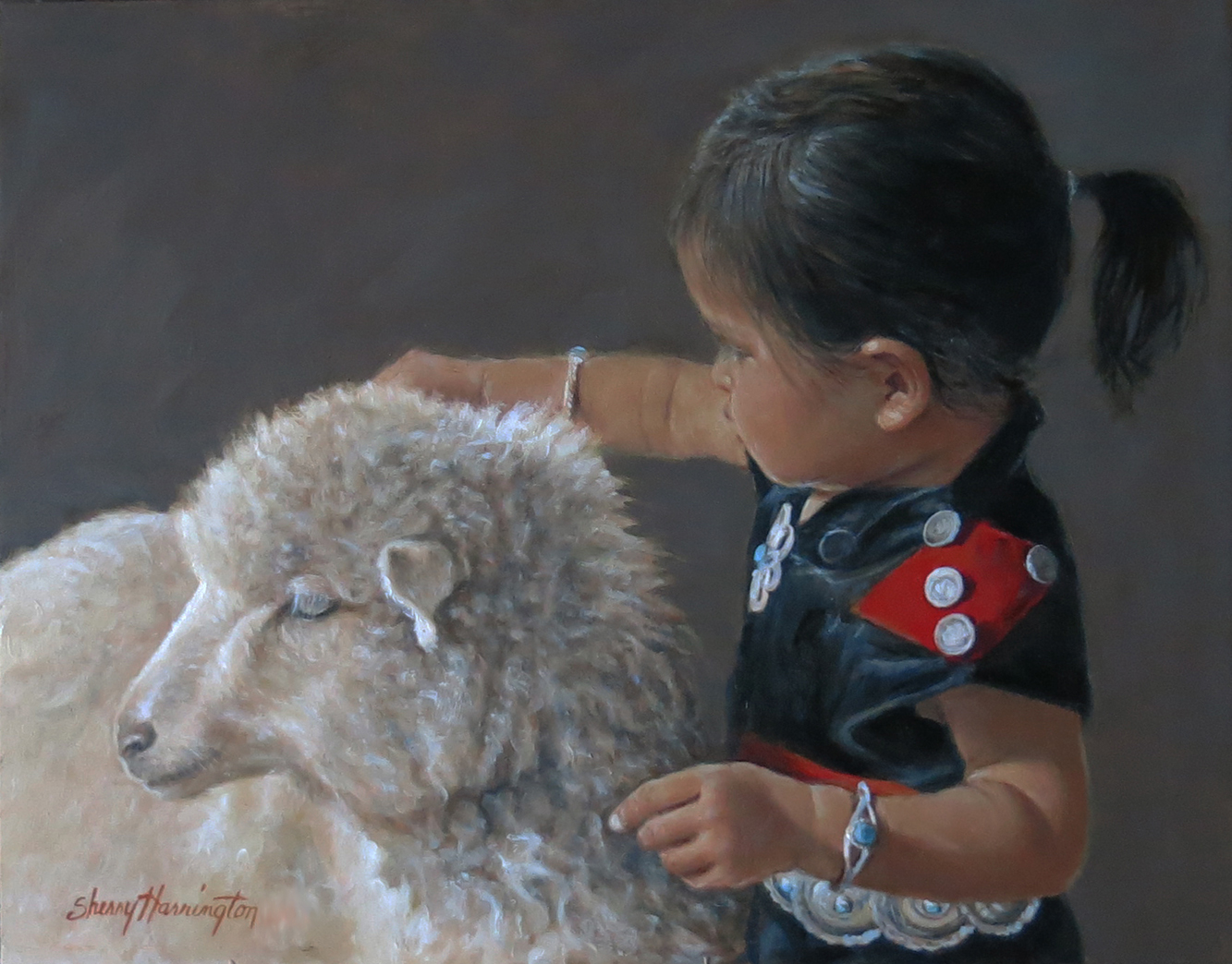 Sherry Harrington has a strong affection for Texas, where she was born, raised, and continues to live. Vast fields of Texas Bluebonnets or cowboys herding cattle, however, are not the subjects of her paintings. She much prefers to fill her canvases with portraits of beautiful Native American women and children.