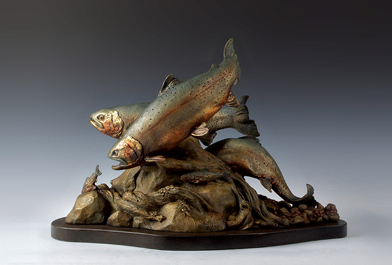 When Evelyn Tennyson, owner of Two Old Crows Gallery in Pagosa Springs, Colorado, asked Dave LaMure to create a monumental sculpture in honor of her late husband’s passion—trout fishing—he hesitated before giving her a de!nite answer. “I said, ‘Let me research it,'” he recalls. LaMure was so focused on the