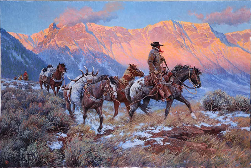In June of 1973, Clark Kelley Price had just worked a spring roundup in Montana. He had four paintings in his truck and decided to stop at the Jensen Gallery in Jackson Hole, Wyoming, on his way home to Utah. He was bedraggled, but he entered the gallery and wandered around, admiring the artwork it housed.