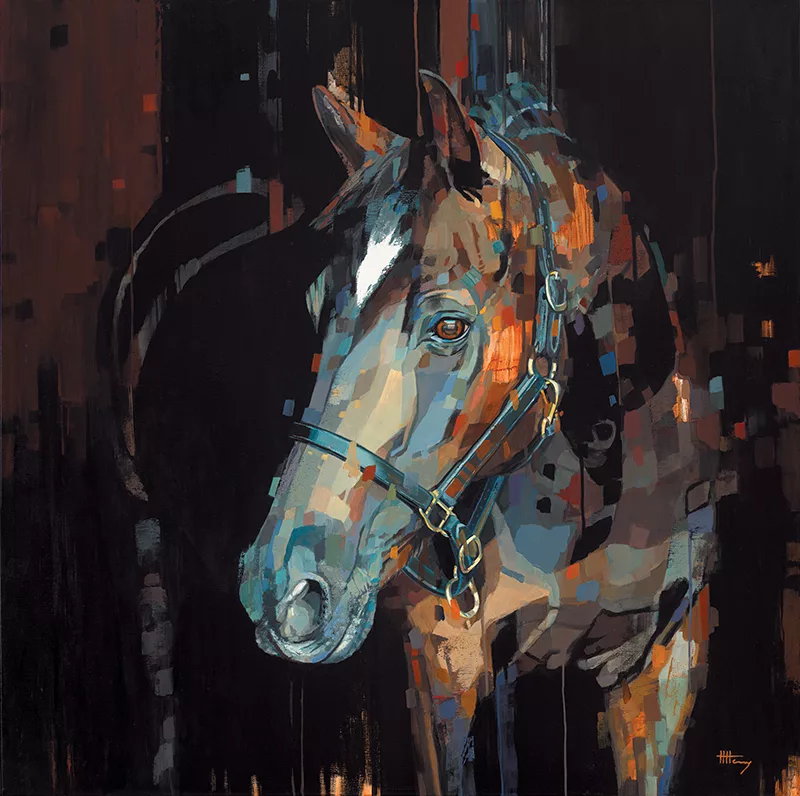 Harper Henry sees gold in everyday things, both figuratively and literally. Her stylized and visually rich depictions of animals and other Western subjects, some of them set against backdrops that incorporate materials such as gold leaf, represent the creative product of someone who is continually collecting and sifting through the things of day-to-day life, as she searches for a telltale glint of something precious. She’s always on the hunt for the proverbial flash in the pan—an expression that had its origin during the Gold Rush, a formative period in the very landscapes that inspire her art.
