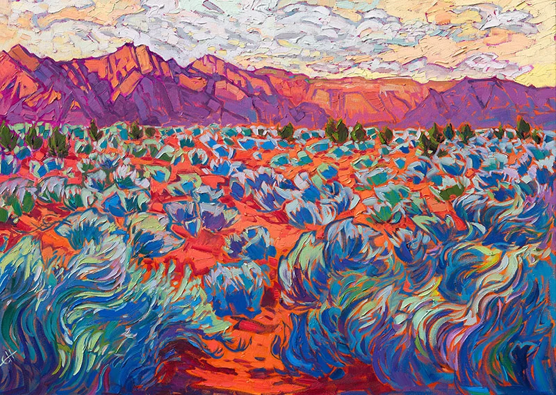 Erin Hanson has an energy that mirrors the paintings she creates. She shares the story of her life—and her work—and injects both with vibrant colors and textures that have captured the attention of collectors throughout the world. That’s no exaggeration; during the past 15 years she has sold 3,000 original paintings and countless prints.