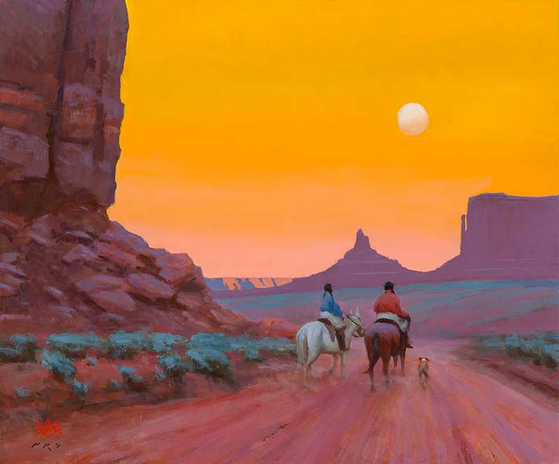Pro recalls boyhood trips and seeing the vast landscapes of the New Mexico and Arizona deserts from the back seat of the family car. They’d travel for about six weeks each year and visit Western art shows and Hopi and Navajo reservations, which piqued the boy’s imagination about life in the Old West, something that continues today. He sees a renewed interest in the Western history and finds that the best way to help stimulate that interest is to tell stories through Western art.