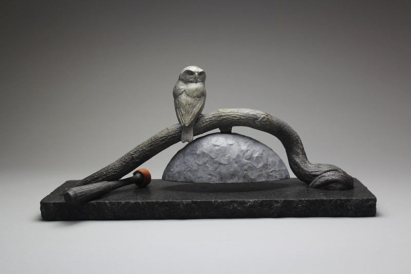 “One of my best selling pieces was a pygmy owl piece titled Nocturn. This piece is another variation on a pygmy owl. The branch is a great twist out of the old wisteria vine on my back patio. While common in our area, I have yet to see a pygmy owl in the wild.”